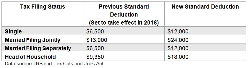 Yes, the standard deduction has roughly doubled for all filers, but the valuable personal exemption has been eliminated. For example, a single filer would have been entitled to a $6,500 standard deduction and a $4,150 personal exemption in 2018, for a total of $10,650 in income exclusions. Under the new tax plan, they would just get a $12,000 standard deduction.