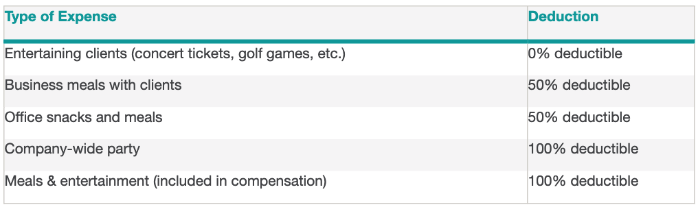2021 Business Meals and Entertainment Deduction